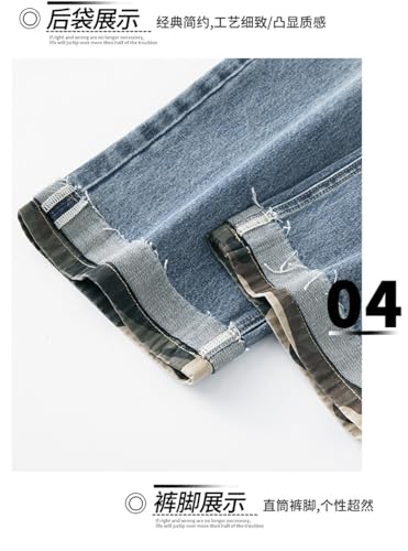 Jeans Pants Trousers Denim Rear Pocket Camouflage for Men's Niche Design Sense Washed Loose Straight Down Commuter Wear 4