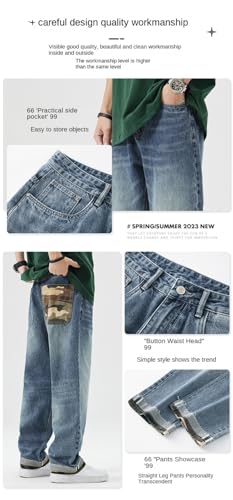 More information about Jeans Pants Trousers Denim Rear Pocket Camouflage for Men's Niche Design Sense Washed Loose Straight Down Commuter Wear