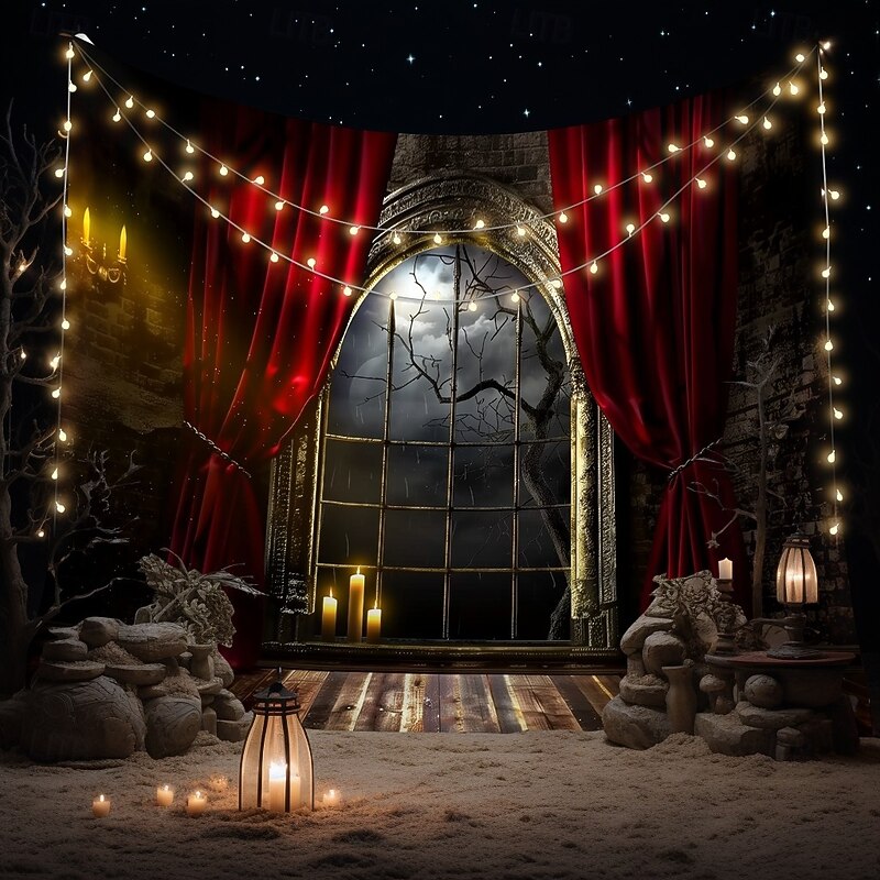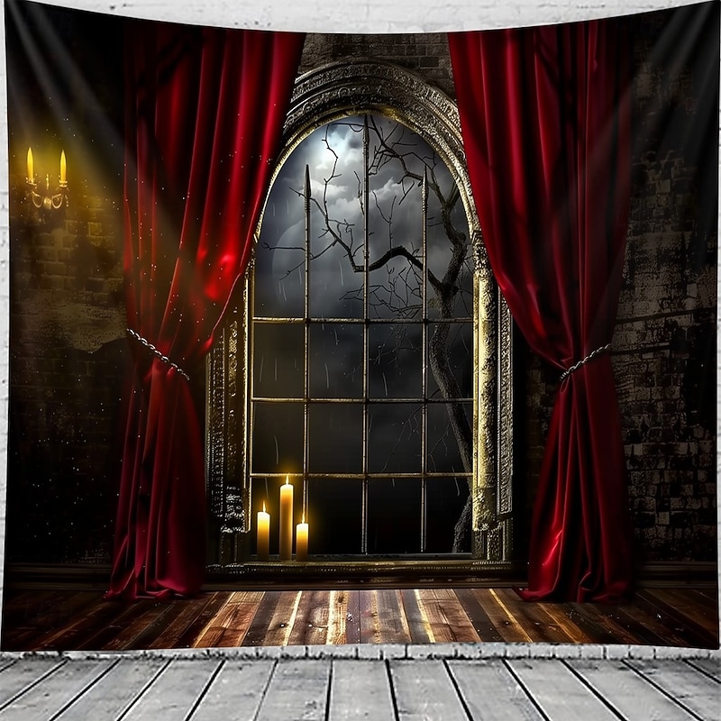 $13.99 - Halloween Gothic Window View Wall Tapestry – Red Curtain Stage with Spooky Moonlit Night Scene, Horror Backdrop for 2025 Halloween Living Room, Bedroom, Haunted House Decoration 2025. Shop for cheap Halloween Wall Tapestries online? Buy at lightinthebox.com on sale today!