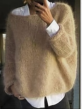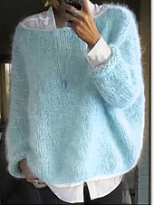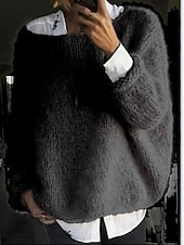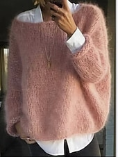 More information about Women's Sweater Casual Soft Pure Color Ribbed Crew Neck Knitted Long Sleeve Regular Tops Knit Outdoor Daily Weekend Black Pink Fall Winter