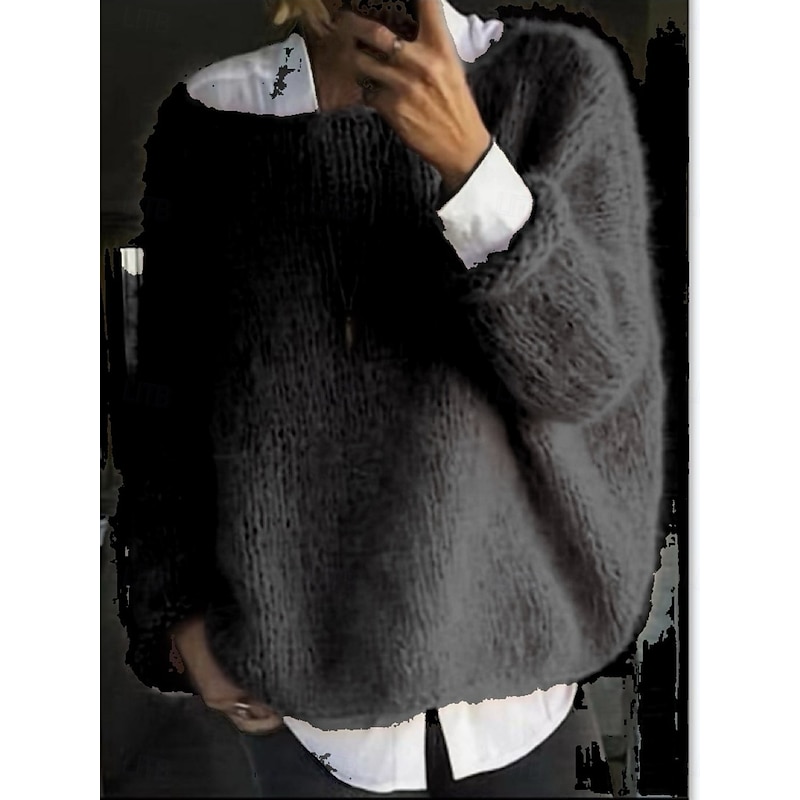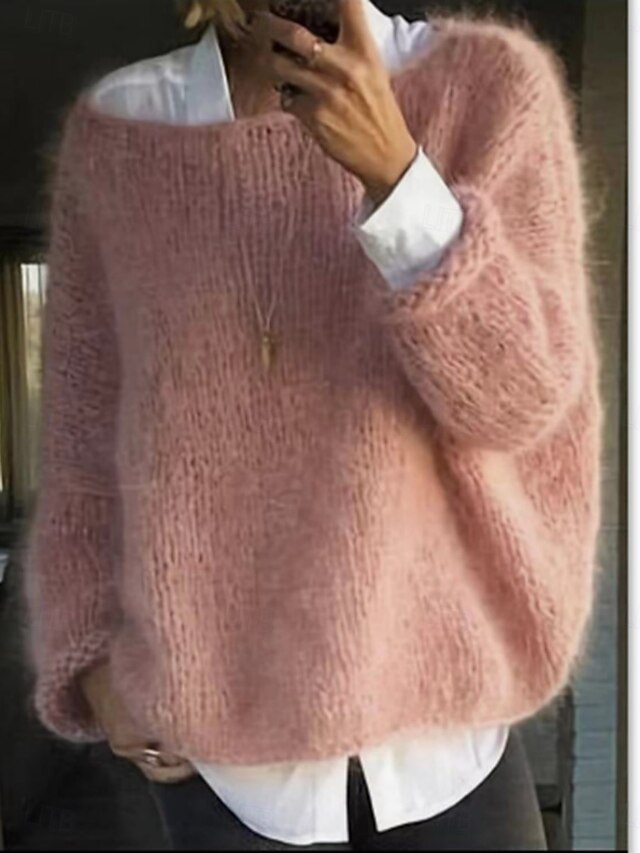 HOT ! Women's Sweater Casual Soft Pure Color Ribbed Crew Neck Knitted Long Sleeve Regular Tops Knit Outdoor Daily Weekend Black Pink Fall Winter