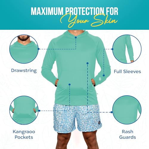 Banana Boat Men's Rash Guard Long Sleeve tee Shirt Hoodie for Men 100% Polyester Shirt | Waterproof | UV Protection UPF 50+ | Seafoam | Large 4