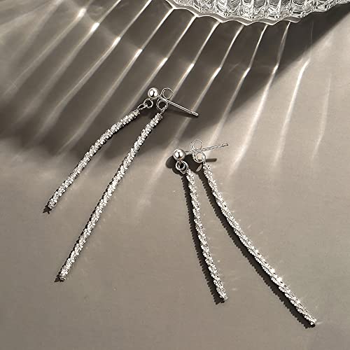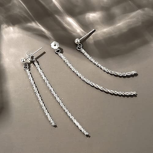 Reffeer Solid 925 Sterling Silver Tassel Chain Dangle Earrings for Women Teen Girls Minimalist Dangle Earrings Drops 4