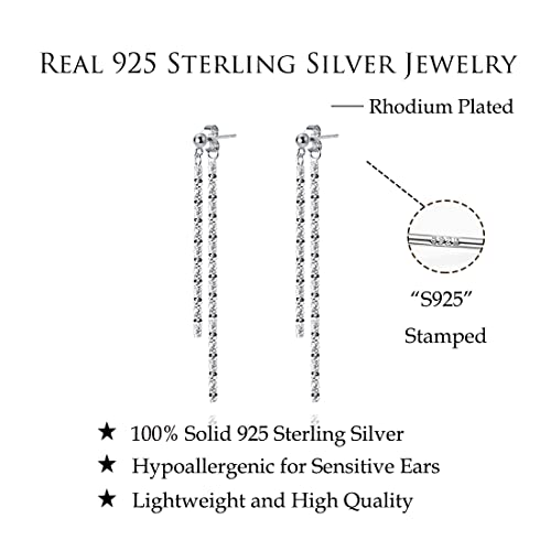 Reffeer Solid 925 Sterling Silver Tassel Chain Dangle Earrings for Women Teen Girls Minimalist Dangle Earrings Drops 7