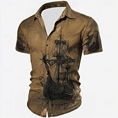 More information about Men's Nautical Sailboat Shirt Summer Shirt Button Up Shirt Short Sleeve Vintage Retro Outdoor Vacation Dailywear Summer Spring Turndown 3D Print Collared Shirts Khaki