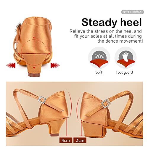 TINRYMX Girls&Women Latin Dance Shoes Silk Ballroom Salsa Tango Professional Performance Practice Dance Shoes, ZSXGG-Brown-4,US 12.5