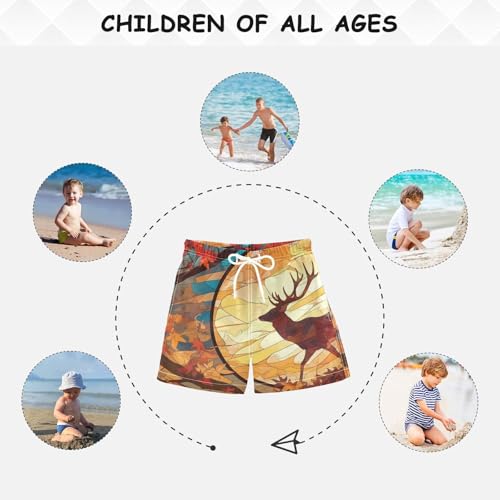 Boys speedy Dry Swim Trunks with Pockets Stained Glass Maple Leaf Deer Beach Shorts for Kids Toddler Swimsuit