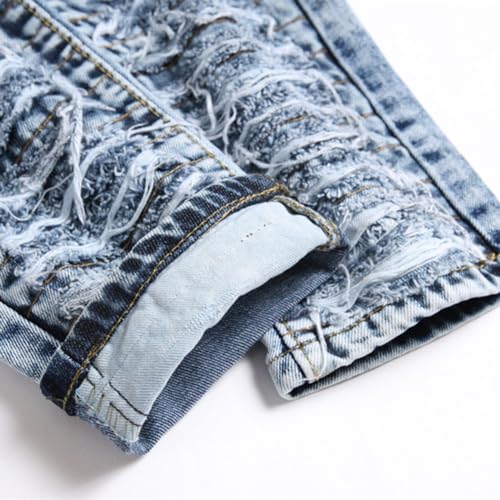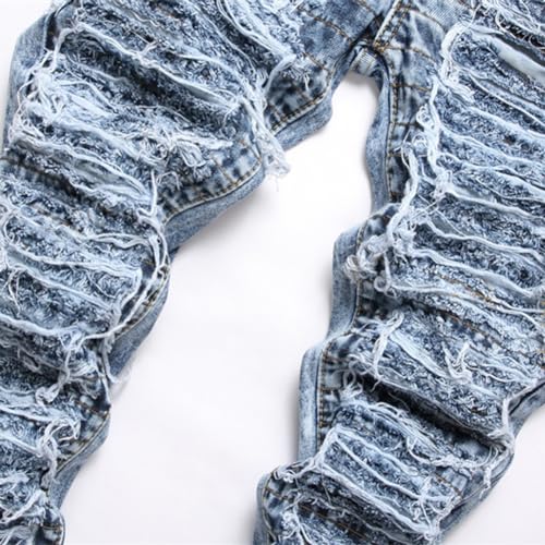 XYGJZ Men's Ripped Jeans Distressed Slim Fit Skinny Stretch Blue Denim Jeans Pants 6