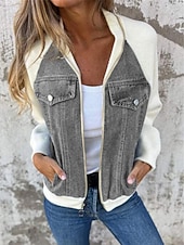 More information about Women's Casual Jacket Textured Jackets Outdoor Street Daily Wear Fall Winter Short Coat Stand Collar Regular Fit Thermal Warm Breathable Stylish Casual Jacket Long Sleeve Color Block Full Zip with