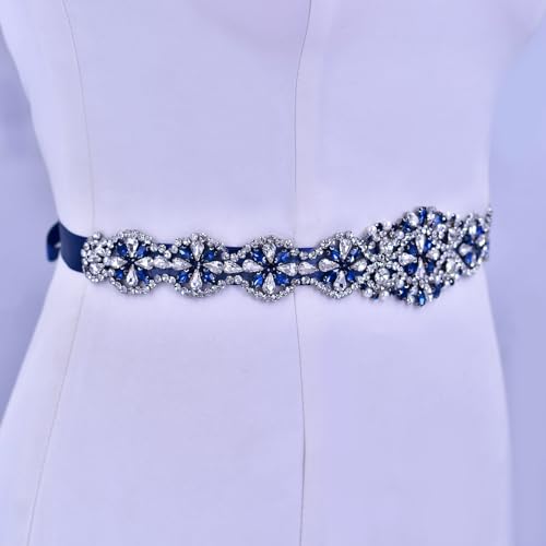 More information about Ladies Dress Belt Navy Blue Rhinestone Handmade Decoration Party Party Party Party Walk Bridesmaid Dress Belt Wedding Female Guest Accessories