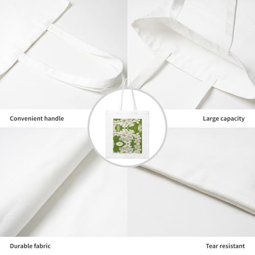 Floral Flowers Daisies Print Canvas Shopping Bag Large Capacity Handbag For Books, Mobiles, And More 7