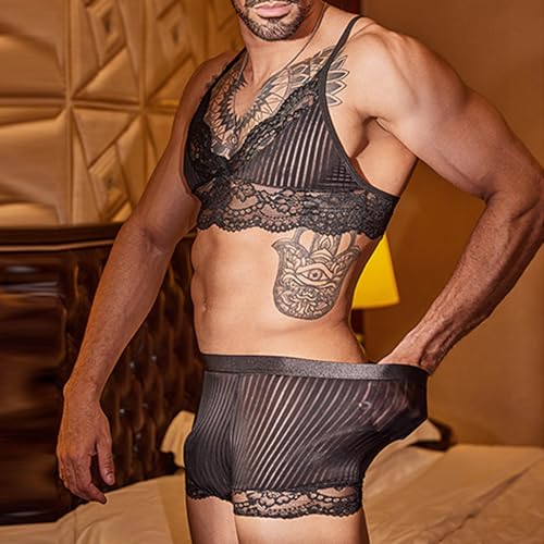 HOT ! Men's Sissy Lingerie Sexy Lace Bralette Tops Underwear Floral Bra Strappy Bra Crossdressing Nightwear Femboy Clothes