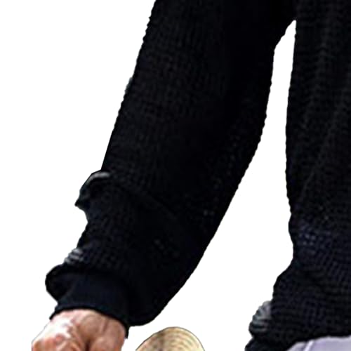 More information about Men's Waffle Knitted Sweater Textured Long Sleeve Crewneck Pullover Male Breathable Stretch Loose Fit Sweaters