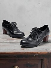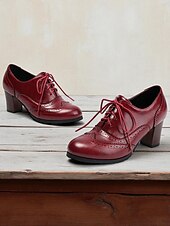 More information about Women's Green Faux Leather Oxford Heels – 1950s Vintage Brogue Lace-Up Chunky Heel Shoes for Work, Fall Fashion and Christmas Outfits
