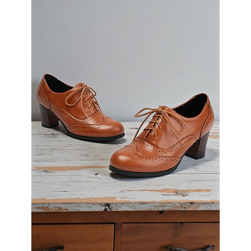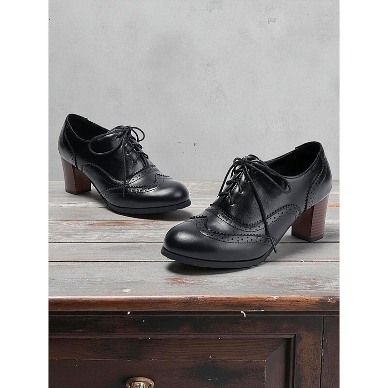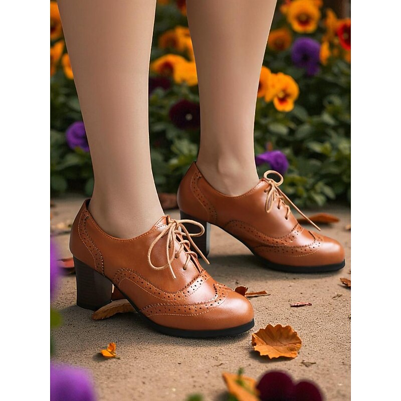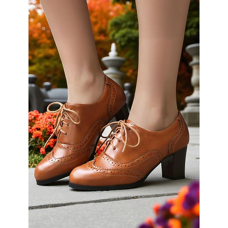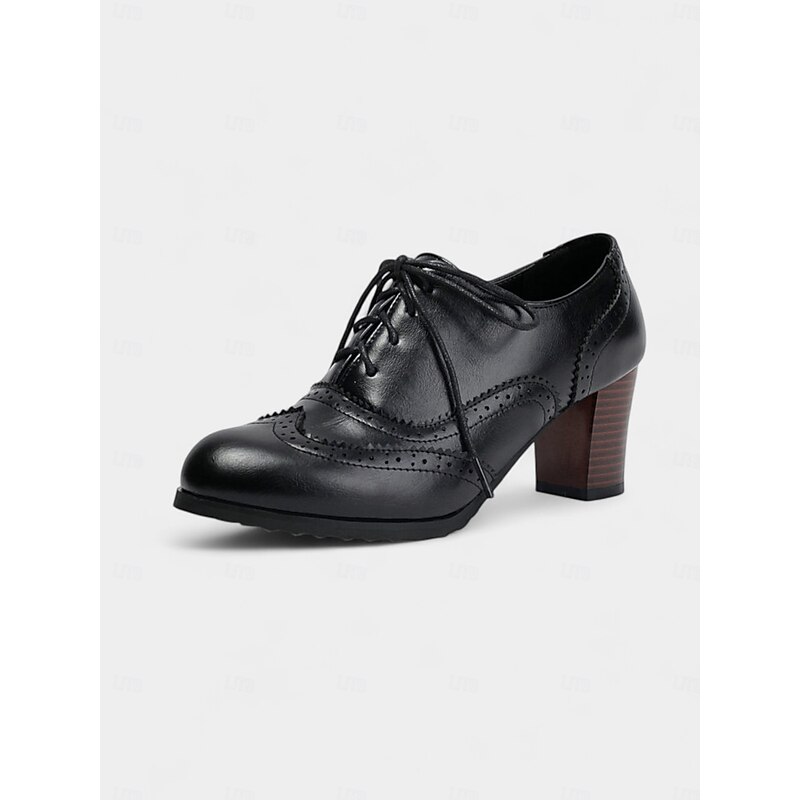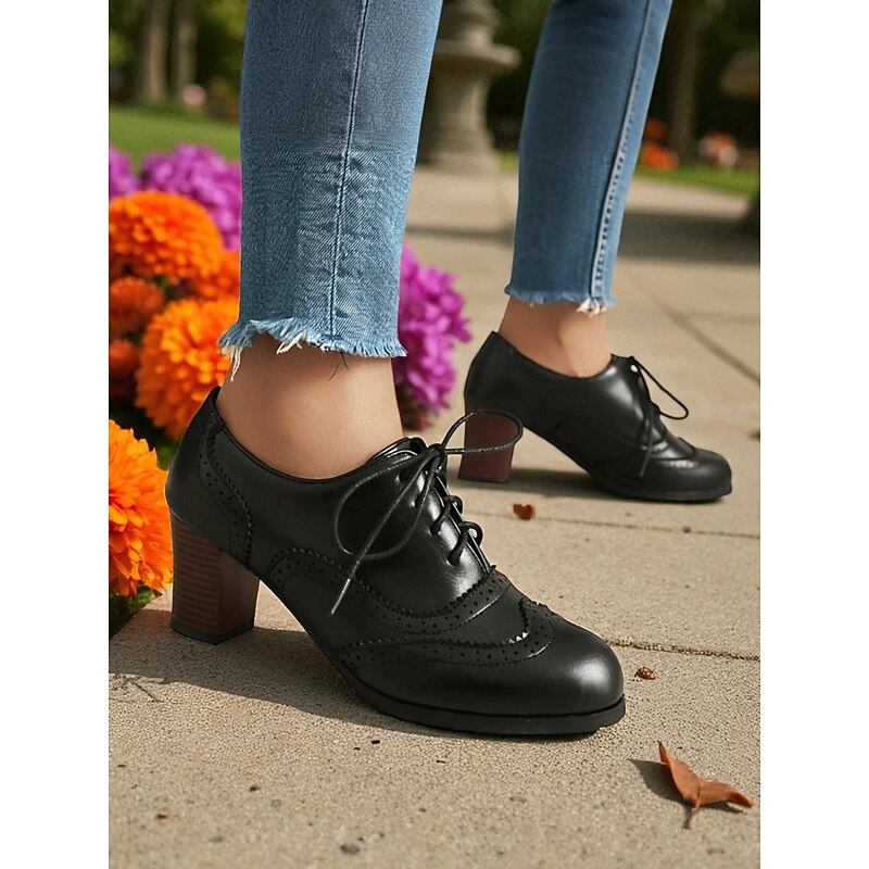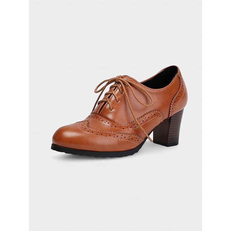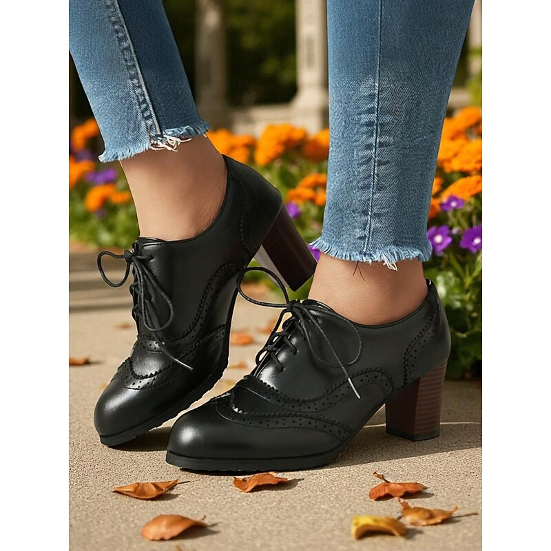 Highlights - Luxurious faux leather upper material - Sleek synthetic leather lining - Stylish chunky heel for added comfort - Classic round toe shape - Durable rubber outsole for long-lasting wear - Stay on trend with the 2025 Brogue style