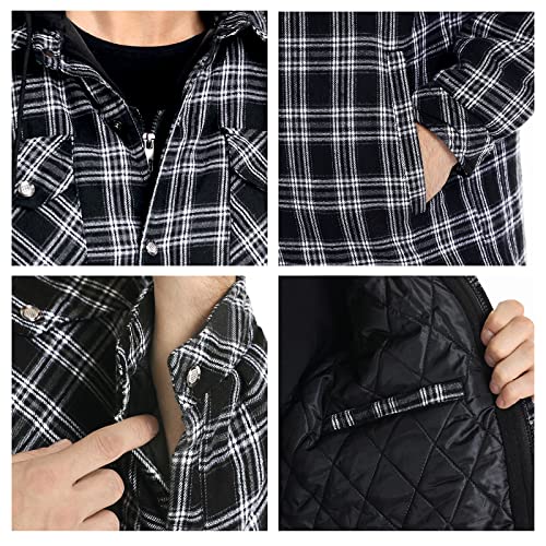 CHEXPEL Flannel Jackets for Men Long Sleeve Plaid Shirt Jacket Quilt Lined Hooded with Button Down Winter Coat 5