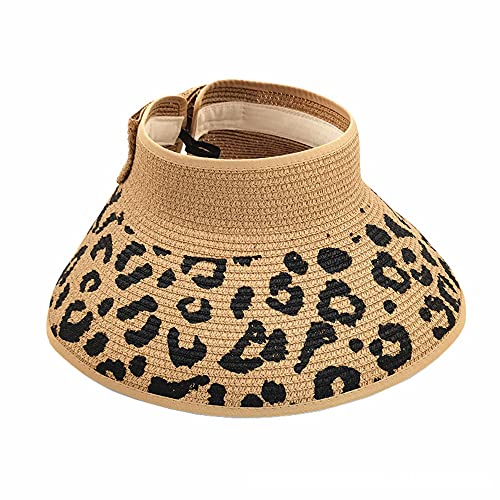 LABANCA Girls Leopard Sun Visor UPF 50+ UV Protection Wide Brim Beach Sun Visor Hat Braided Straw Roll-up Summer Hat 6