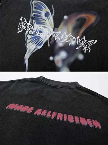 More information about Aelfric Eden Mens Vintage Graphic Tees Y2K Irregular Butterfly Printed Tee Oversized Streetwear Casual T-Shirt