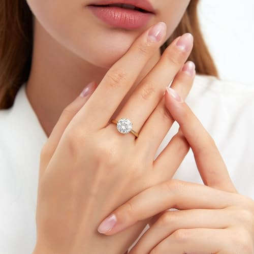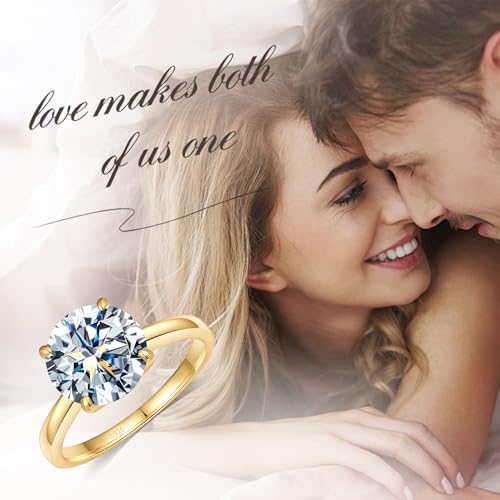 2CT Round Moissanite Engagement Ring for Women,S925 Sterling Silver Solitaire Moissanite Ring with 18K Yellow Gold Plated,D Color VVS1 Anniversary Wedding Band Size6.5 4