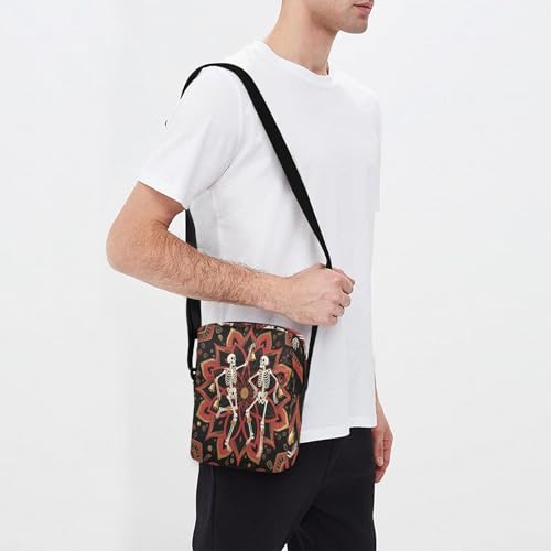 Boho Mandala Flower and Human Skeleton messenger bag crossbody cross body bag for woman Shoulder Handbag For Travel Adjustable Strap for business Outdoor Daily 5