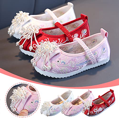 • 🍓【𝗠atching】: Chinese embroidered shoes, exquisite patterns, fashion, delicate and one-of-a-kind embroidered flat shoes can be paired with hanfu or cosplay. The cute pumps 𝐚𝐝𝐝 vitality to girl's outfit and the selling colors of 𝗽ink, red, peach can 𝐦atch easily with casual skirt, school 𝐮niform, everyday jeans, formal dress and so on. These toddler little-kids girls floral embroidery flower shoes outstanding for both casual and formal wear.