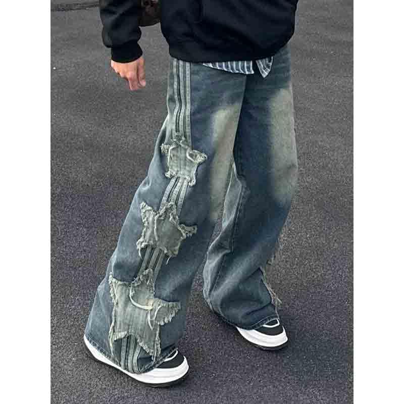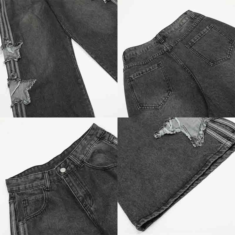 • Trendy and personalized design: unisex star patch jeans with a loose straight fit combined with street style patch elements, casual and fashionable, easily creating personalized outfits