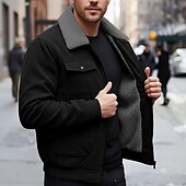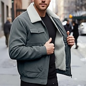 More information about Men's Corduroy Jacket Fleece Jacket Formal Home Thermal Warm Pocket Fleece Collar Fall Winter Solid Color Active Neutral Short Black Brown Gray Jacket