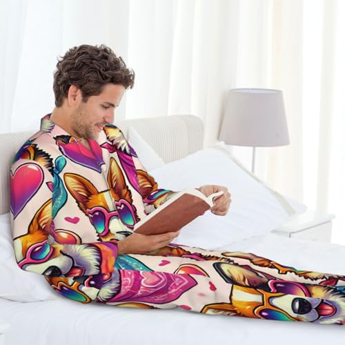Mens Long Sleeves Pajama Set Colorful Dogs Love Sunglass Cozy Two-Piece Loungewear For Nighttime Comfort,Casual Wear 7
