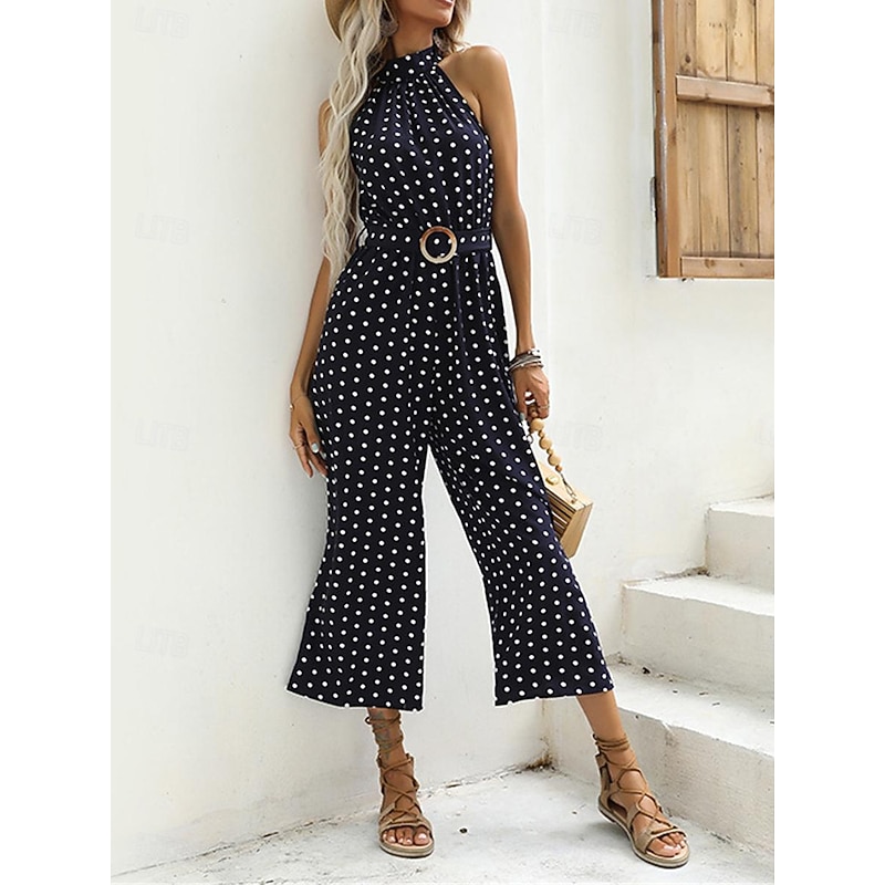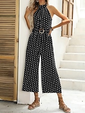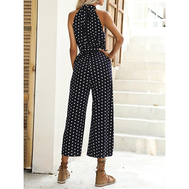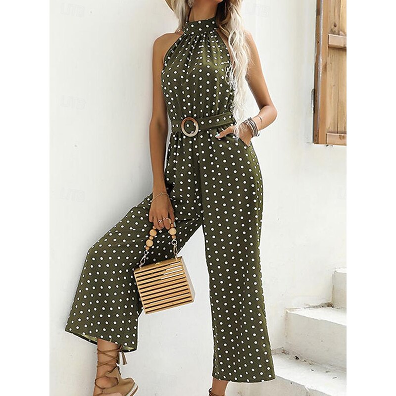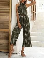 More information about Women's Normal Jumpsuit Streetwear Polka Dot Sleeveless Halter Neck Pocket High Waist Street Daily Regular Fit Black Green Summer
