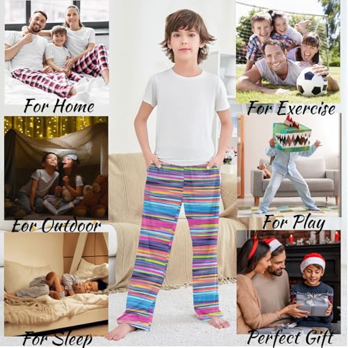 More information about visesunny Boys Pants Color Abstract Stripe Soft Long Bottoms Jogger Pants Elastic Waist Trousers with Pockets XL Colorful
