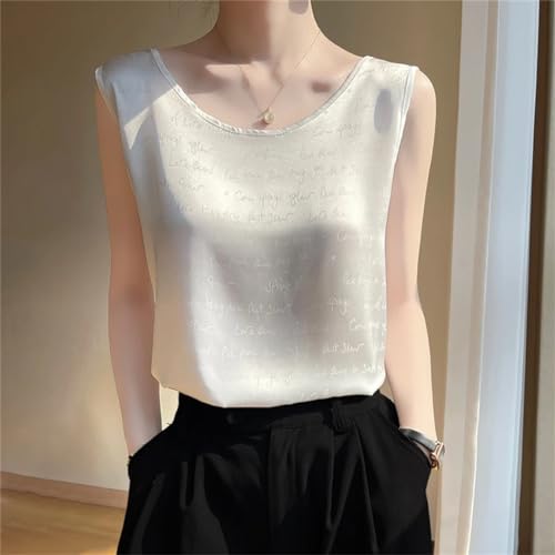 Women Silk Camisole Ladies' Loose Knitted Vest Thin Sleeveless Tops Suit Inside Satin Sling Mulberry Silk Base Shirt 7