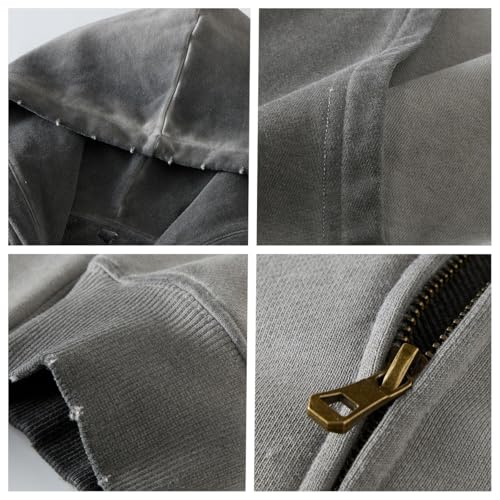 • Features:This oversized men's hoodie features a unique vintage wash design with faded gradients, intentional distressing on the hood, hem, and cuffs to simulate a rugged, vintage feel. It also features long sleeves, a metal zipper, a spacious hood, and large pockets.