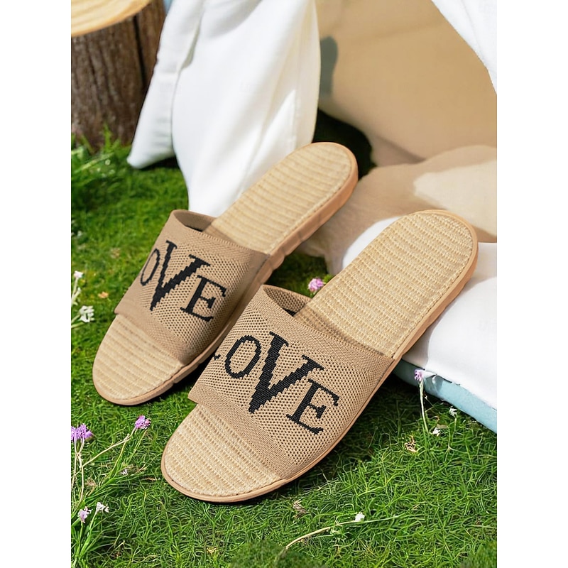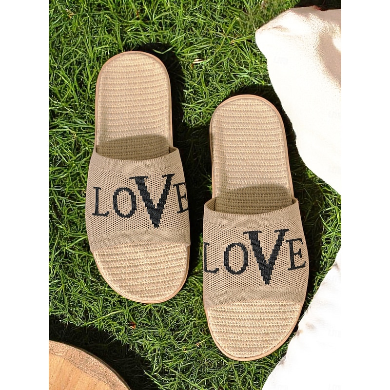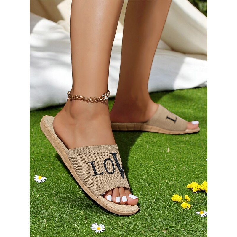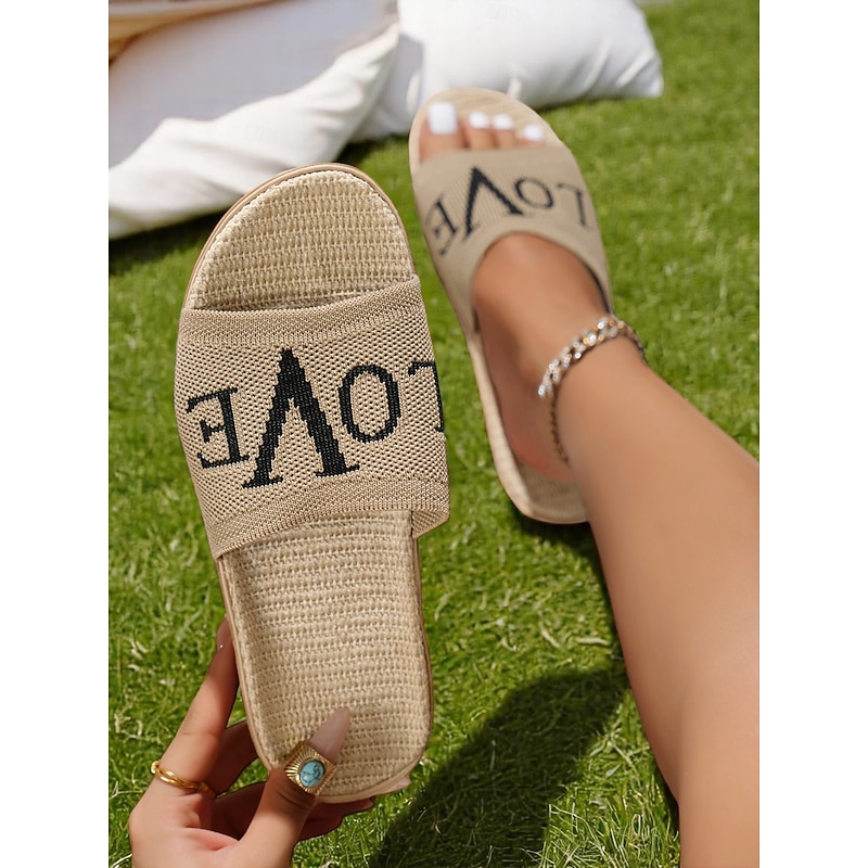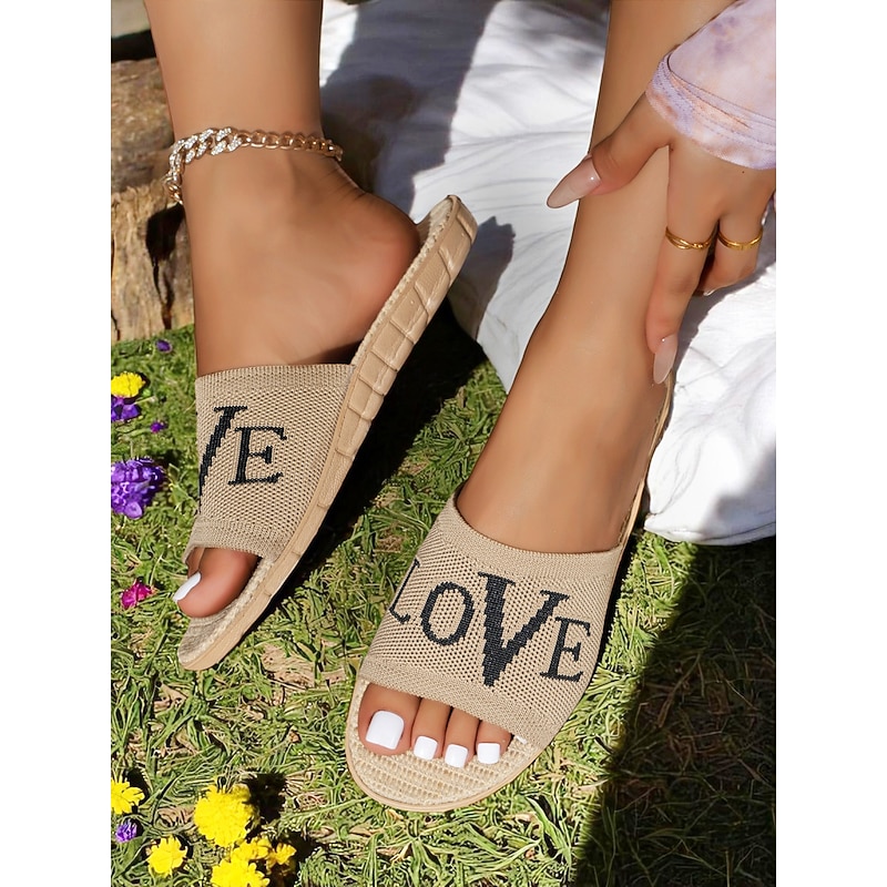 HOT ! Women's Flyknit Slide Sandals - Red "LOVE" Graphic, Casual Slip-On Design, Perfect for Beach Days and Casual Outings