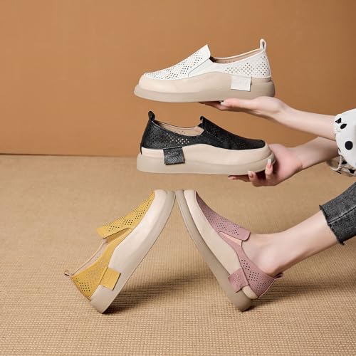 Women's Hollow Platform Wedge Leather Loafers,Summer Comfortable Slip On Breathable Orthopedic Sneakers Fashion Walking Penny Shoes 4