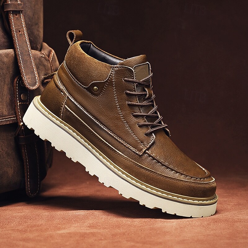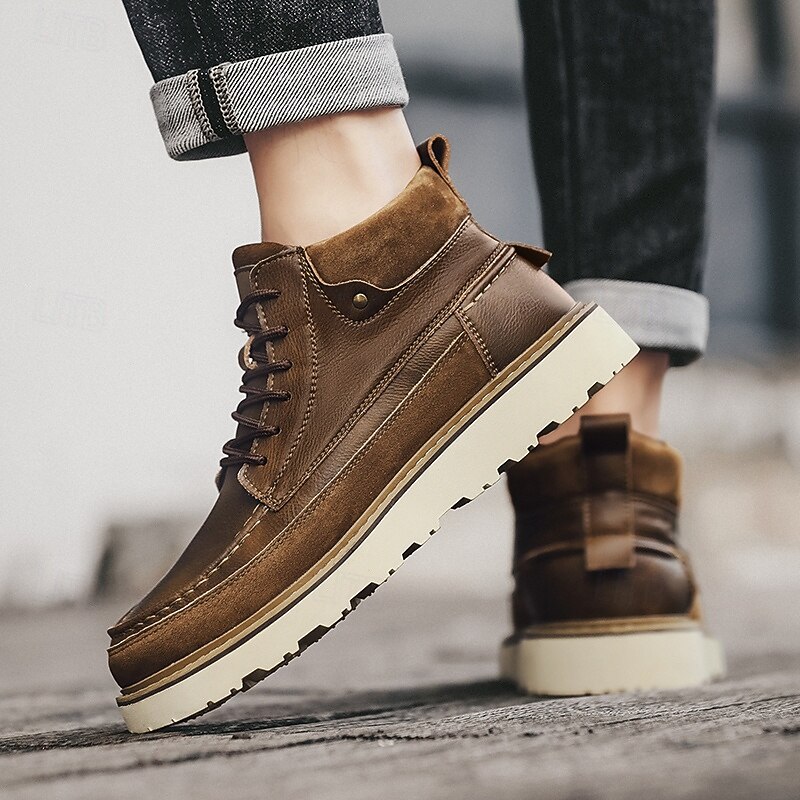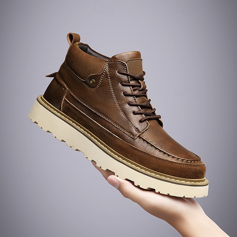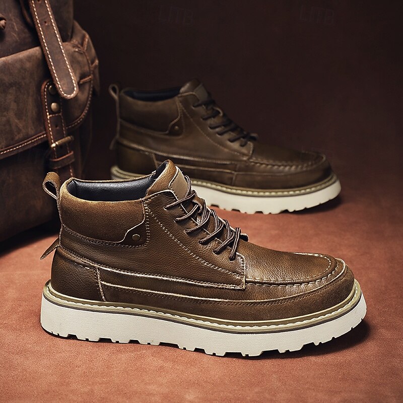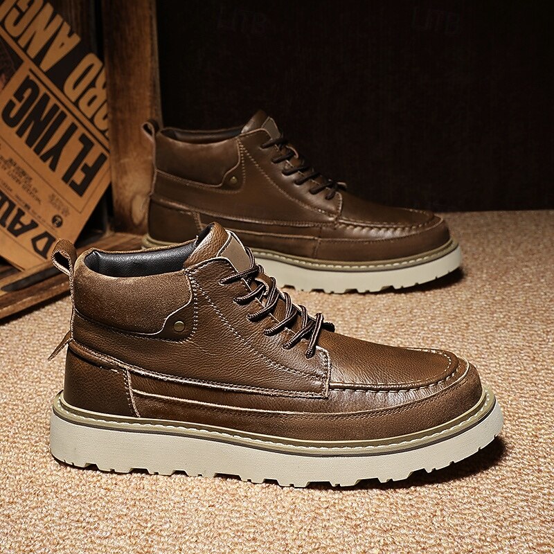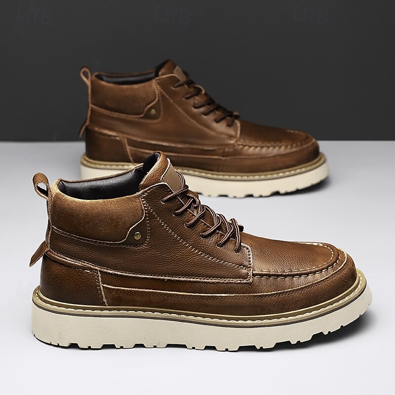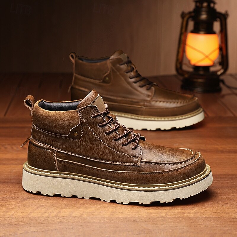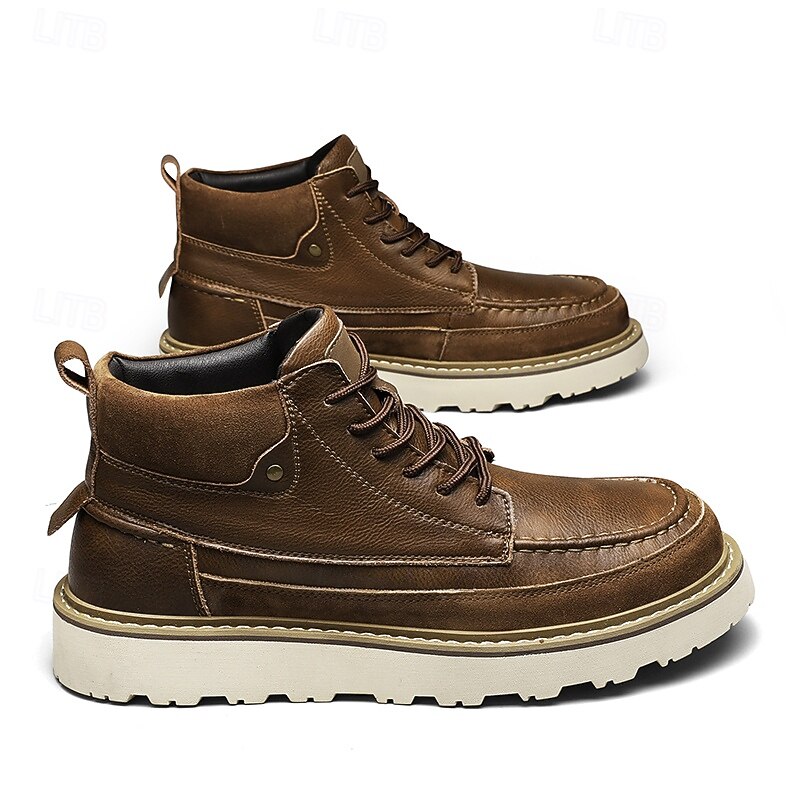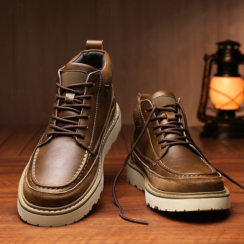HOT ! Men's Brown Lace-Up Boots – Vintage-Inspired Leather Ankle Boots with Durable Sole for Business Casual, Travel and Outdoor Use