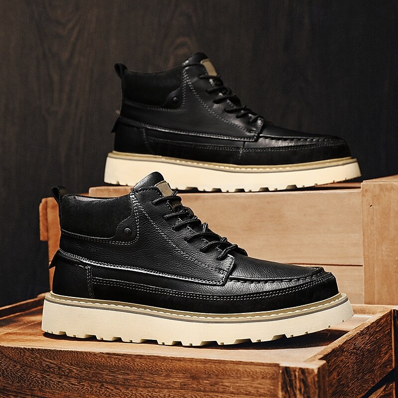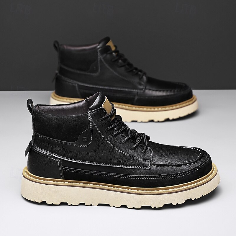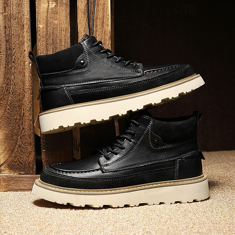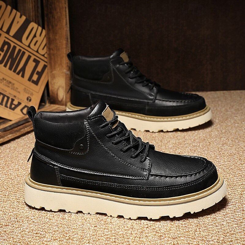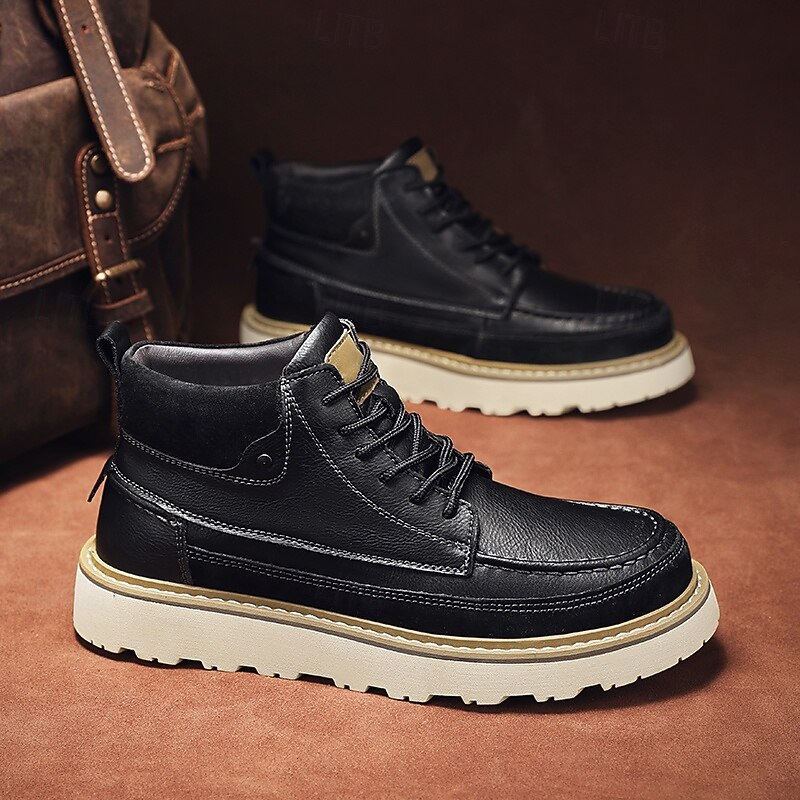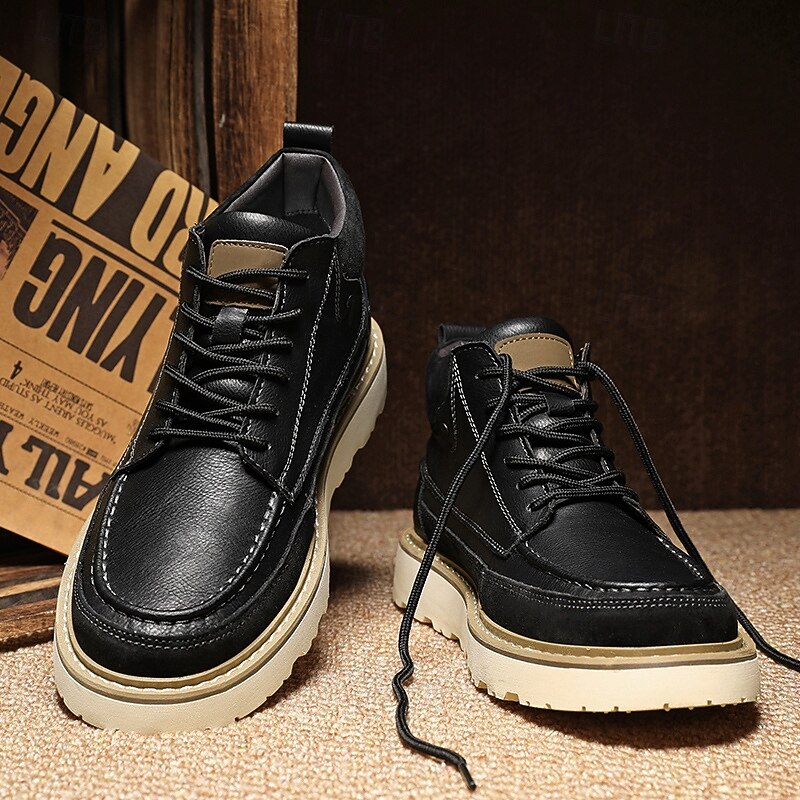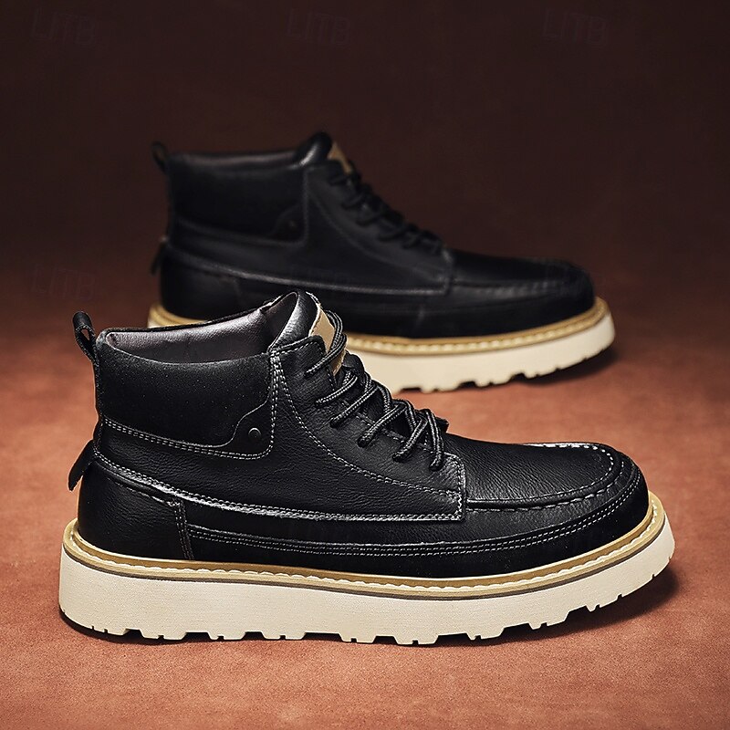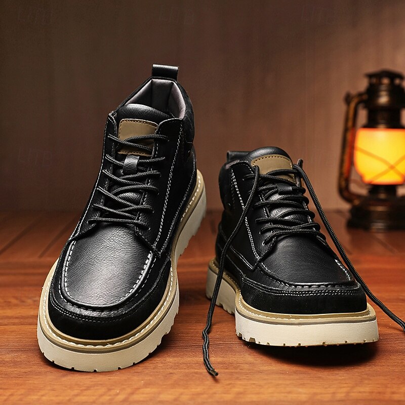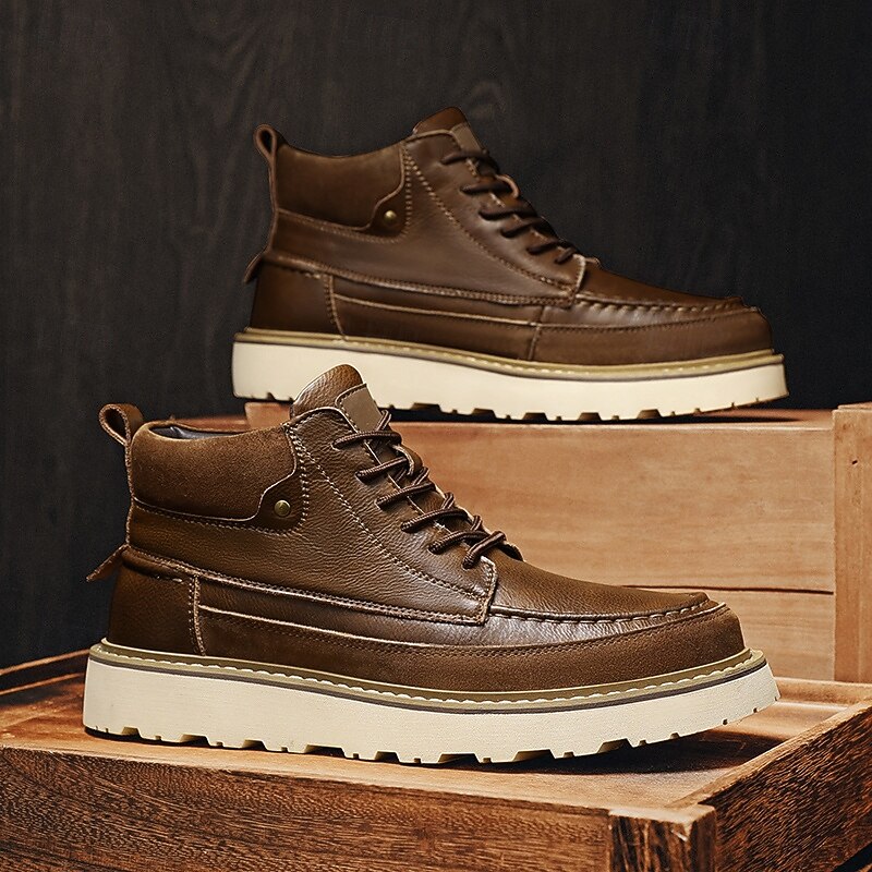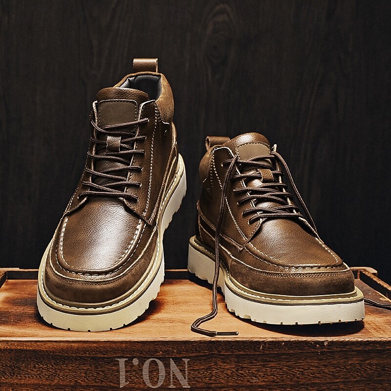HOT ! Men's Brown Lace-Up Boots – Vintage-Inspired Leather Ankle Boots with Durable Sole for Business Casual, Travel and Outdoor Use