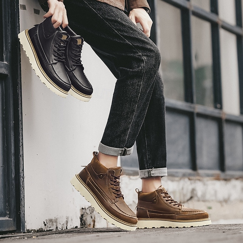 Men's Brown Lace-Up Boots – Vintage-Inspired Leather Ankle Boots with Durable Sole for Business Casual, Travel and Outdoor Use 47