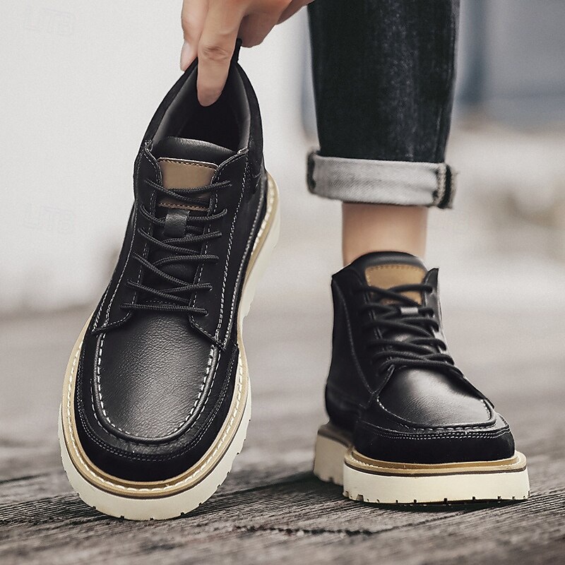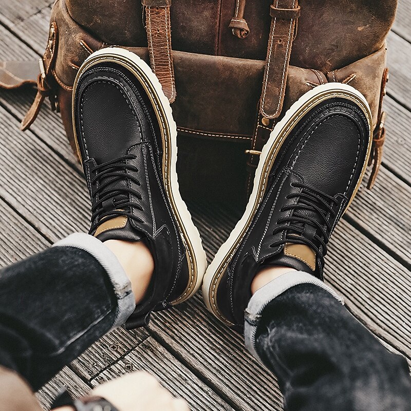 Men's Brown Lace-Up Boots – Vintage-Inspired Leather Ankle Boots with Durable Sole for Business Casual, Travel and Outdoor Use 35