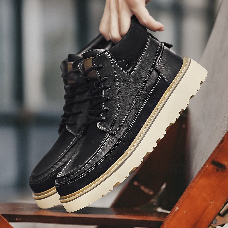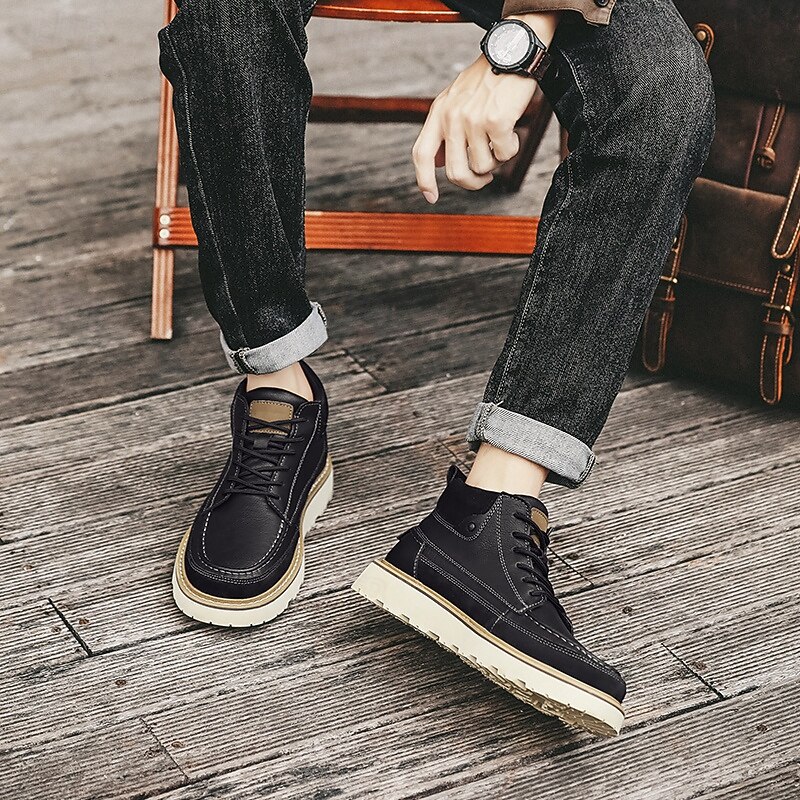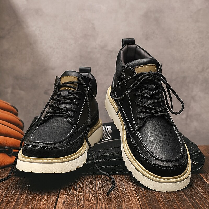 Men's Brown Lace-Up Boots – Vintage-Inspired Leather Ankle Boots with Durable Sole for Business Casual, Travel and Outdoor Use 46