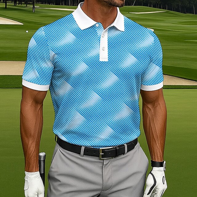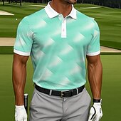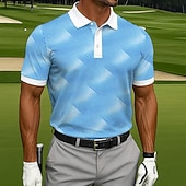 More information about Men's Polo Casual Sports Turndown Short Sleeve Fashion Leisure Geometic Golf 3D Print Buttons Summer Lake Blue Blue Sky Blue Polo