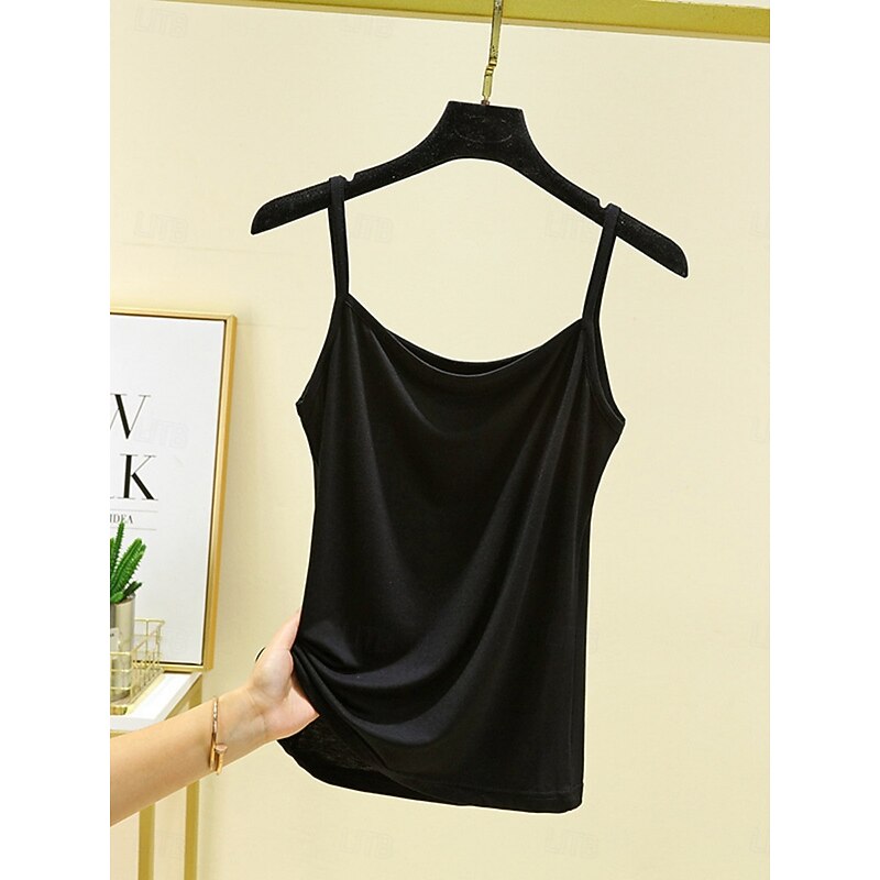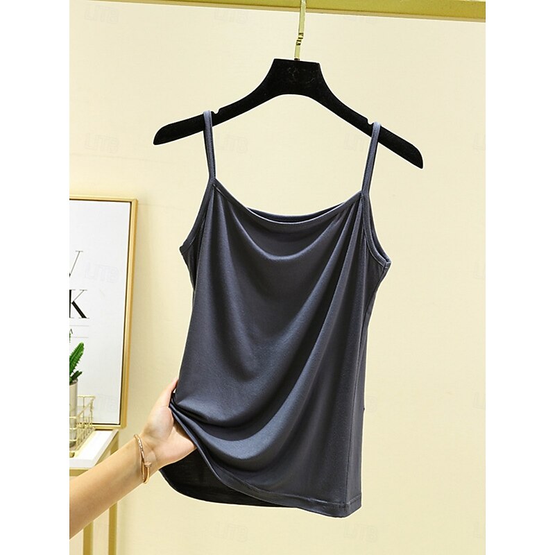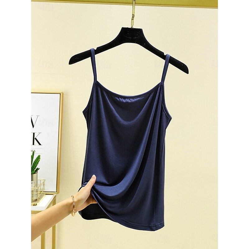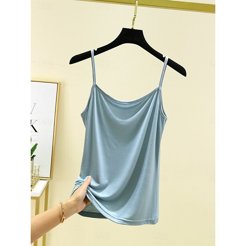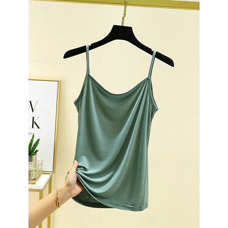 More information about Women's Camisole Tank Top Solid Color Daily Sleeveless Crew Neck Regular Tops Daily Backless Light Blue Iron Gray Denim Blue Matcha green Black Summer