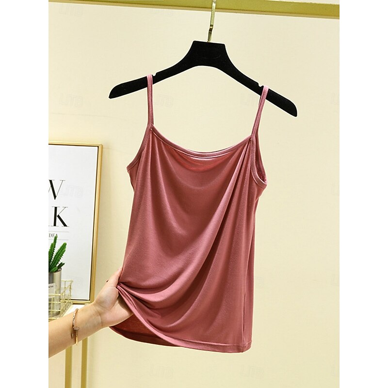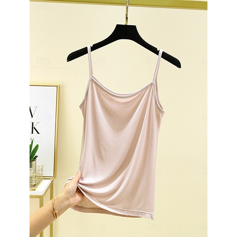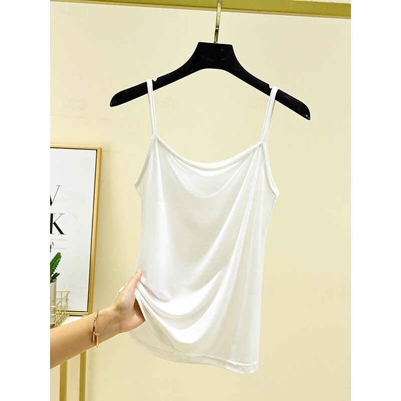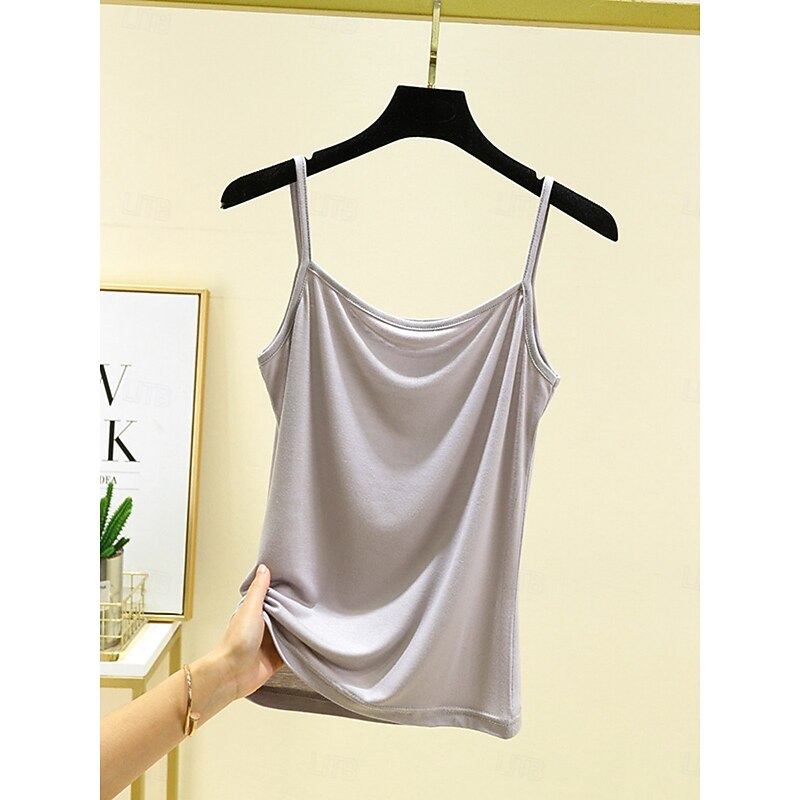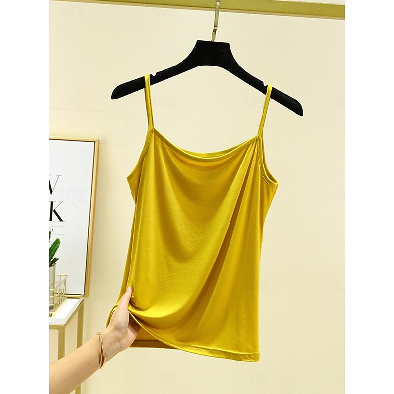 More information about Women's Camisole Tank Top Solid Color Daily Sleeveless Crew Neck Regular Tops Daily Backless Light Blue Iron Gray Denim Blue Matcha green Black Summer
