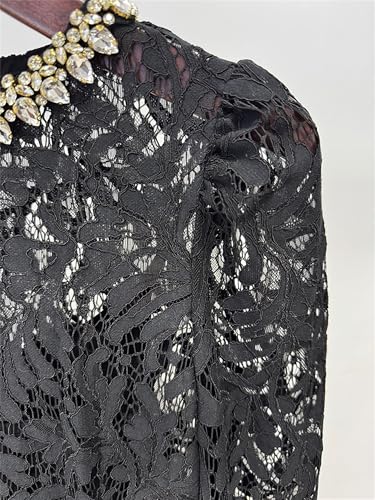 More information about Women's 2025 Designer Lace Dress Beaded Diamond Long Sleeve Round Neck Slim Female Midi Elegant Dresses