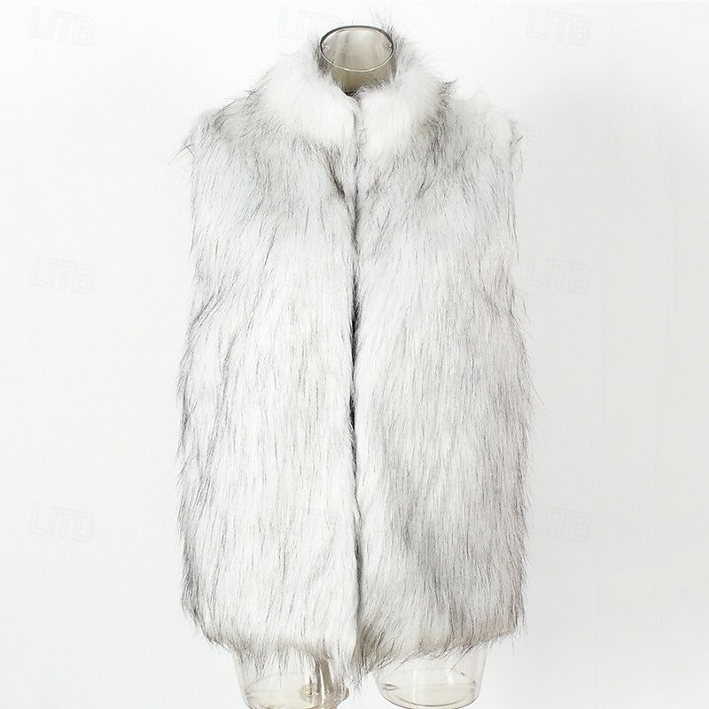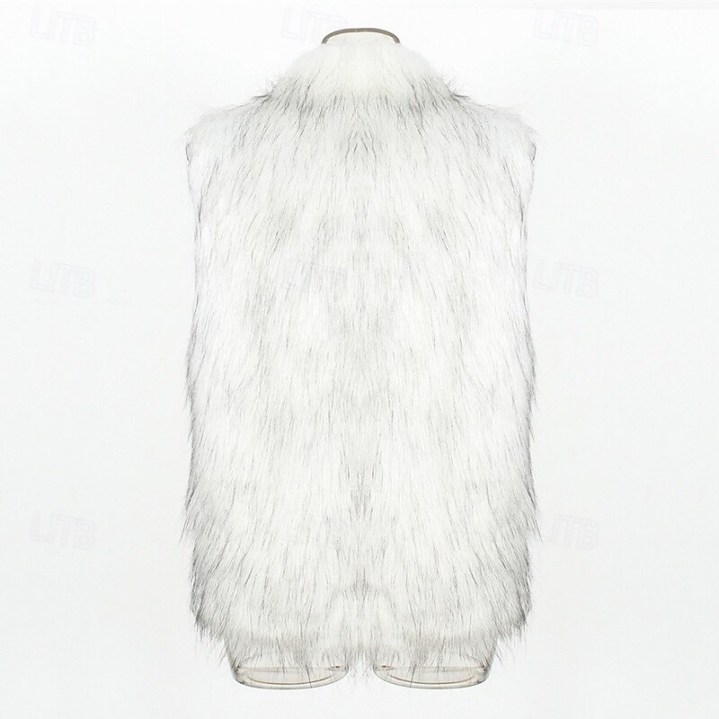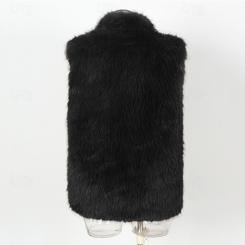 More information about Men's Vest Faux Fur Gilet Daily Date Vacation Fashion Casual Fall & Winter Keep Warm Polyester Comfortable Plain Cardigan Stand Collar Regular Fit Black White Yellow Vest