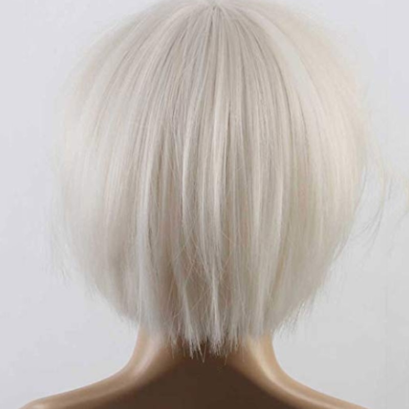 More information about White Wigs for Women Synthetic Wig Kinky Straight Bob Neat Bang Wig Short White Synthetic Hair 7 Inch Women's White Christmas Party Wigs