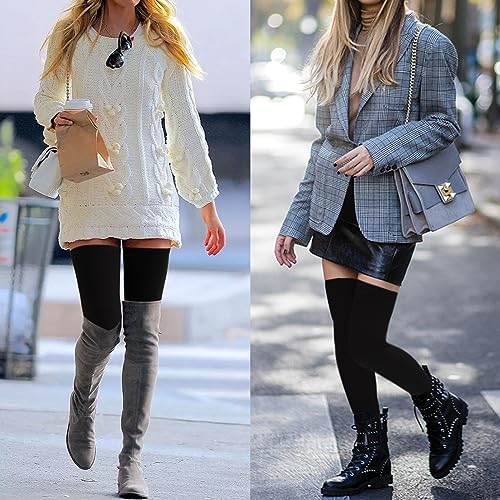 • 【High Quality Material】 Our thigh high socks for women are made of 85% polyester, 15% spandex with special sewing craft to make them thick, keep you warm in winter. Enough stretch hugs your legs without the appearance of bunching. Socks area are not fleece lined, make your feet keep breathing freely, stink-free. When you wear thick shoes, you don't have to worry about sweaty feet or stuffy feet.