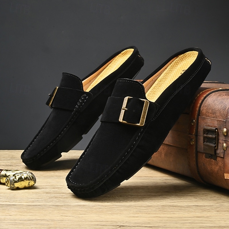 Men's Buckle Strap Faux Leather Moccasin Loafers, Slip-On Lightweight Driving Shoes for Casual Style, Business Travel and Everyday Wear 36
