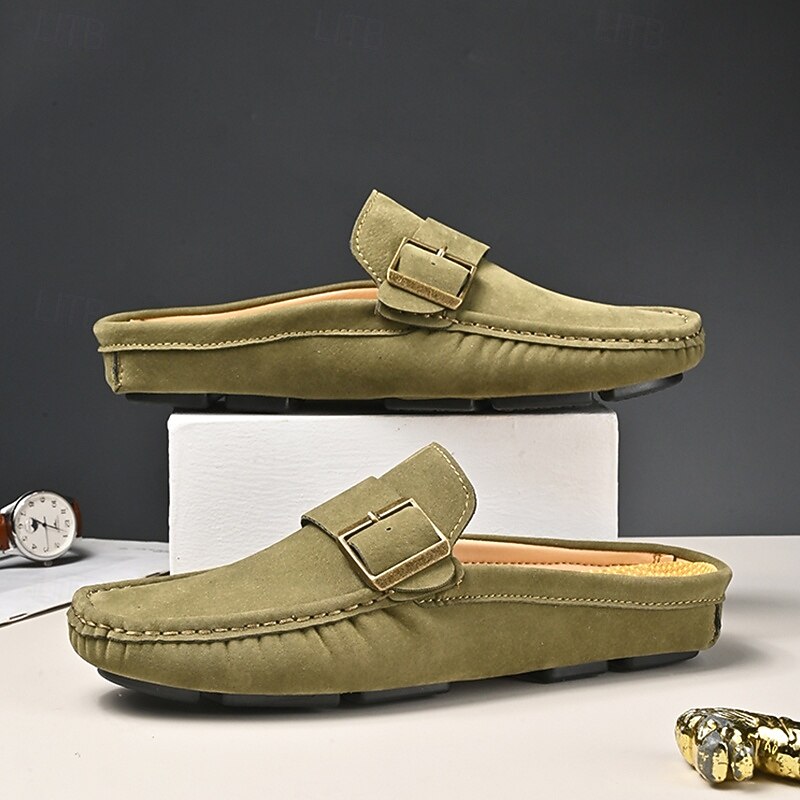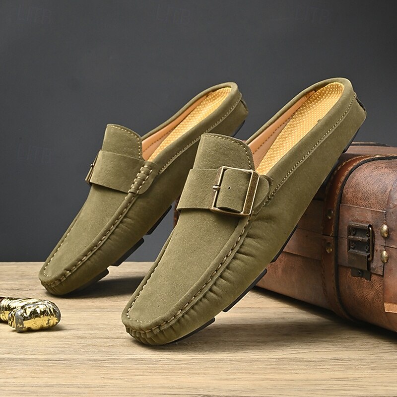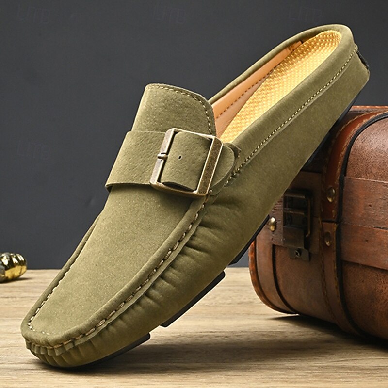 HOT ! Men's Buckle Strap Faux Leather Moccasin Loafers, Slip-On Lightweight Driving Shoes for Casual Style, Business Travel and Everyday Wear