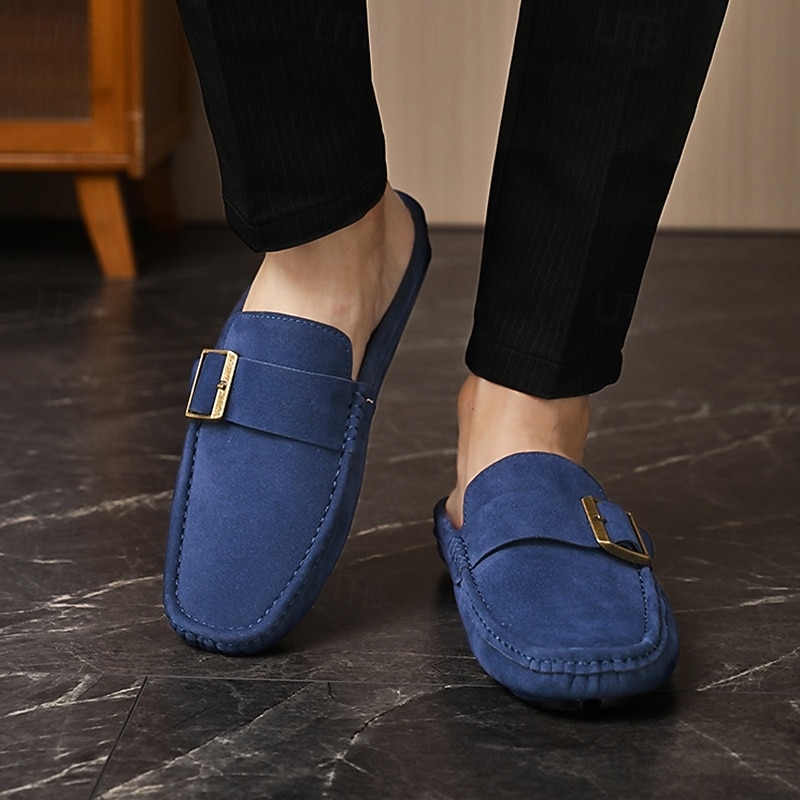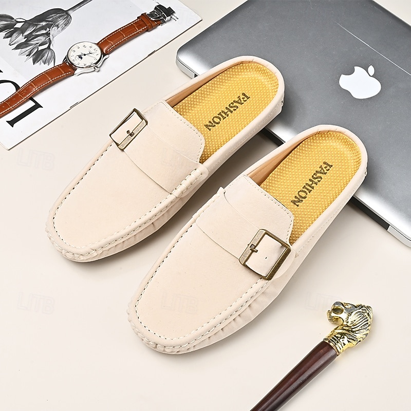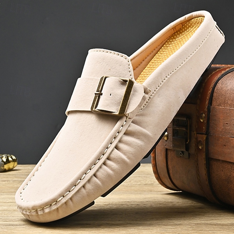 Men's Buckle Strap Faux Leather Moccasin Loafers, Slip-On Lightweight Driving Shoes for Casual Style, Business Travel and Everyday Wear 25
