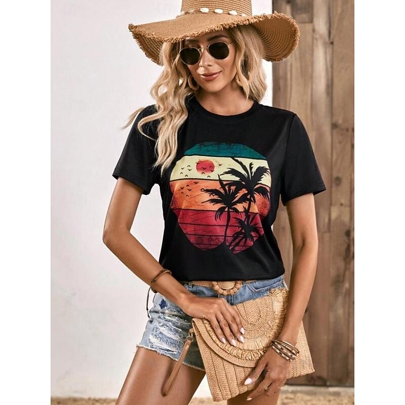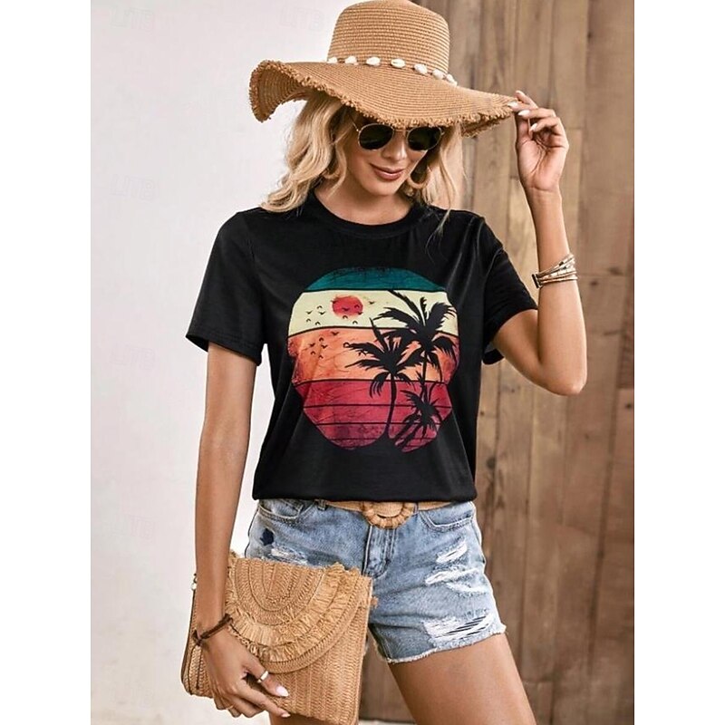 HOT ! Women's T Shirt Graphic Fashion Hawaiian Short Sleeve Crew Neck Regular Tops Casual Weekend Print Black Summer